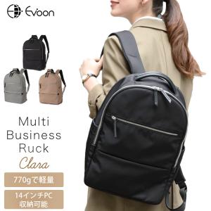 公式 Evoon マルチビジネスリュックClara 軽量 770g 14L レディース 多機能 多収納 多ポケット 自立構造 キャリーオン 撥水 通勤 pc パソコン 14インチ YKK