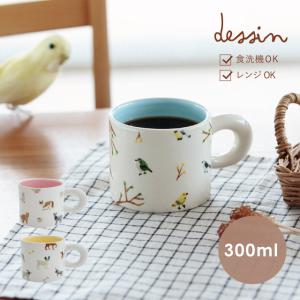 マグ Dessin デッサン 300ml マグカップ 猫 犬 鳥 白 陶器 かわいい おうちカフェ コーヒーカップ ギフト 食洗機 レンジ ビスク
