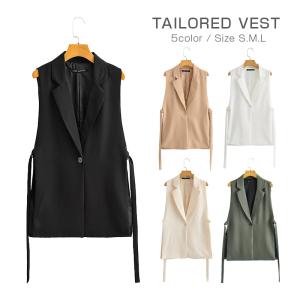 ジレ ベスト レディース テーラードベスト ロング丈 大人コーデ 春夏秋 フォーマル 前開き きれいめ オーバーシルエット カフェ サテン系 レイヤード