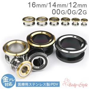 ボディピアス バイカラー フレッシュトンネル 拡張ピアス16mm 14mm 12mm 00G 0G 2G 金属アレ対応 ステンレス 拡張 ラージ