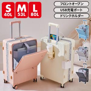 スーツケース フロントオープン 横開き 拡張機能 ストッパー カップホルダー Sサイズ 機内持ち込み Mサイズ スーツケース フロントオープン 多機能