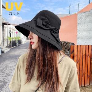 帽子 レディース セール中 UVカット 紫外線カット つば広 リボン 折りたたみ 紐付き