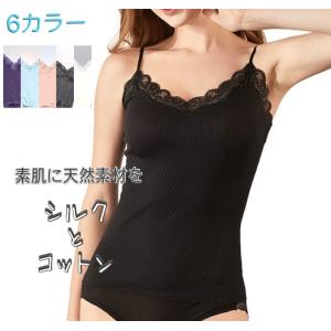 キャミソール シルクとコットンの天然素材 肌に優しい 肌着 インナー レース