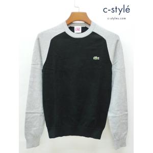 P113 [人気] LACOSTE LIVE ラコステライブ ニット 2 ブラック×グレー 綿100% | ★