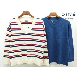 P240 [未使用品] Eddie Bauer エディーバウアー Vネックニット PXL ベージュ系 ブルー系 綿100% レディース | ★