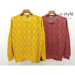 P241 [未使用品] Eddie Bauer エディーバウアー クルーネックニット PXL イエロー系 レッド系 綿100% レディース | ★