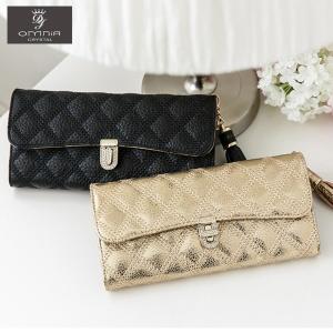 長財布 財布 本革 omnia オムニア ブランド 三つ折り かぶせ 金運 使いやすい バイカラー キルティング タッセル 金 黒