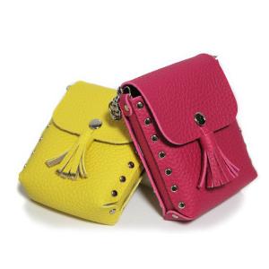 シガレットケース タバコケース タバコ入れ 小物入れ 名刺入れ 極小 チェーンショルダー タッセル 黄色 ピンク time01