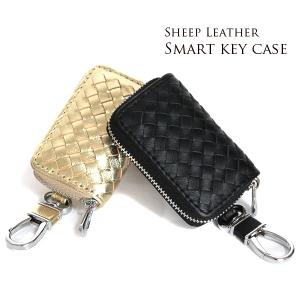 スマートキーケース キーケース 本革 車 キーカバー レザー おしゃれ 安い 鍵入れ メッシュ イントレ 羊革 黒 金 ゴールド