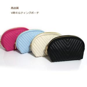 化粧ポーチ メイクポーチ コスメポーチ 丸型 大容量 大きい おしゃれ かわいい ブランド V字 キルティング