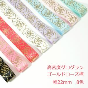 高密度グログランリボン ゴールドローズ柄 22mm