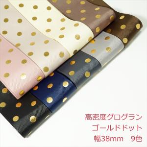 高密度グログランリボン ゴールドドット 幅38mm
