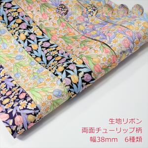 生地リボン 両面チューリップ柄 幅38mm