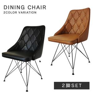 ダイニングチェア 2脚セット おしゃれ 北欧 椅子 ファブリック レザー チェアー デザインチェア ダイニングチェアー ブラック脚 スチール脚 食卓椅子
