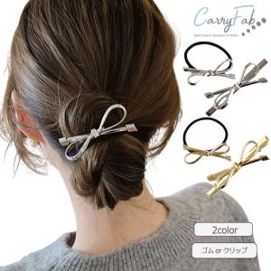 メタルリボン ヘアアクセ ヘアゴム クリップ 選べる 2way ゴールド シルバー 大人可愛い 髪留め