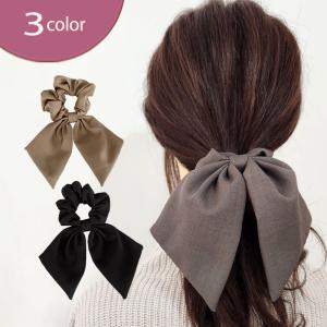 ビッグ リボン シュシュ ボリューム ヘアアクセサリー まとめ髪 へアゴム 簡単アレンジ 大きめ 髪飾り