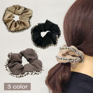 フリンジ シュシュ ボリューム ヘアアクセサリー 大きめ まとめ髪 黒 ブラック 簡単アレンジ 髪ゴム 追跡可能メール便