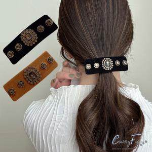 ヘアピン ベロア ぱっちん ビジュー ヘアアクセ 髪留め まとめ髪 キラキラ シンプル ヘア クリップ 華やか 大人 レディース 黒 ビーズ