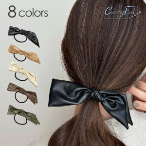 リボン ヘアゴム フェイクレザーヘアアクセサリー レザー調 まとめ髪 髪留め 大きめ おしゃれ 大人 上品
