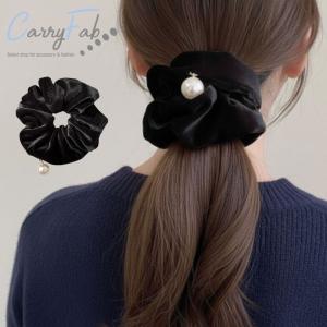 シュシュ ベロア 黒 ボリューム パール ヘアアクセサリー まとめ髪 簡単アレンジ 髪ゴム アクセント 普段使い ヘアゴム 秋冬 プレゼント メール便送料無料