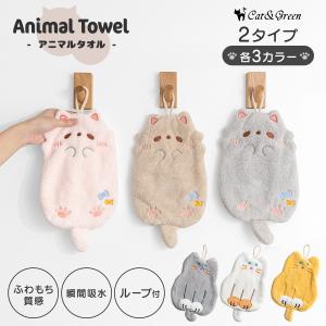 アニマルタオル ハンドタオル ループ付きタオル マスコット キッズ 洗面所 速乾 ふわふわ やわらか パイル ハンドタオル 手拭き 保育園 幼稚園 キッチン