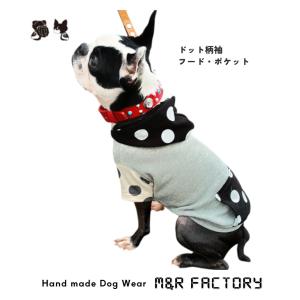 オンラインストア限定 Lサイズ〜裏毛グレー地クロ地ドット柄フード・袖・ポケット付トレーナー2604f #犬服 #ボストンテリア #フレンチブルドッグ #パグ