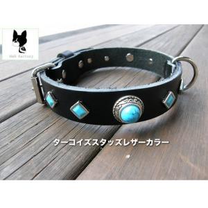 幅広い犬種に人気・M&R Factory(新)ターコイズブルー・革製シロ・ハートスタッズ首輪25002 #首輪 #ボストンテリア #フレンチブルドッグ