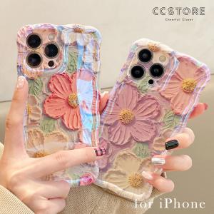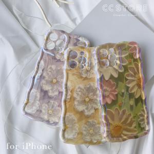 スマホケース iPhone なみなみ ウェーブ 花柄 オーロラ加工 油絵風 iPhone13 iPhone14 iPhone15 アイフォン カバー 韓国 おしゃれ 軽い
