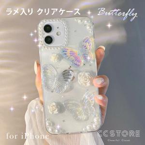 スマホケース iPhone 蝶々 クリア ハードタイプ ラメ オーロラ iPhone13 iPhone14 iPhone15 iPhone16 アイフォン バタフライ キラキラ ホワイト 透明 おしゃれ