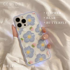 スマホケース iPhone なみなみ ウェーブ クリア 蝶々 くま 花 ソフトタイプ ファンシー iPhone13 iPhone14 iPhone15 iPhone16 かわいい 韓国