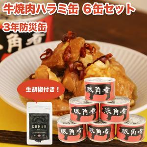 缶詰 牛焼肉ハラミ 6缶セット 生胡椒 かんづめ 常温 非常食 防災缶 保存缶 保存食 防災食 肉 牛肉 煮物 がっつり おかず あて プレゼント こしょう 甘辛味