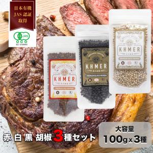 3種の乾燥胡椒100gセット 黒胡椒 白胡椒 赤胡椒 ブラックペッパー ホワイトペッパー レッドペッパー カンポットペッパー 有機JAS認証 調味料