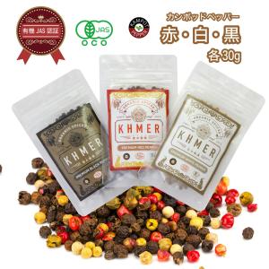 3種の乾燥胡椒30gセット 黒胡椒 白胡椒 赤胡椒 ブラックペッパ ー ホワイトペッパー レッドペッ パー カンポットペッパー 有機JA S認証 調味料