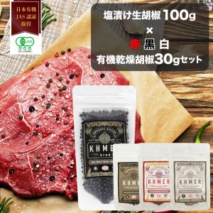 塩漬け生胡椒 100g 乾燥胡椒 30g カンポットペッパー 黒胡椒 赤胡椒 白胡椒 調味料 送料無料 有機JAS認証 カンボジア オーガニック