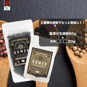 塩漬け生胡椒 60g 黒胡椒 20g カンポットペッパー 生胡椒 塩漬け 調味料 送料無料 有機JAS認証 カンボジア ブラックペッパー 黒の衝撃
