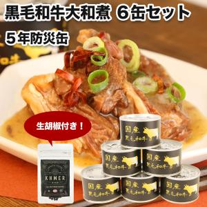 缶詰 牛肉大和煮 黒毛和牛 国産和牛 6缶セット 生胡椒 かんづめ 常温 非常食 防災缶 保存缶 保存 防災食 牛肉 煮物 がっつり おかず プレゼント こしょう 甘辛味