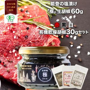 塩漬け生胡椒 60g 能登の塩 黒胡椒 赤胡椒 白胡椒 生胡椒 乾燥胡椒 30g セット カンポットペッパー 業務用 有機JAS認証 ブラックペッパー