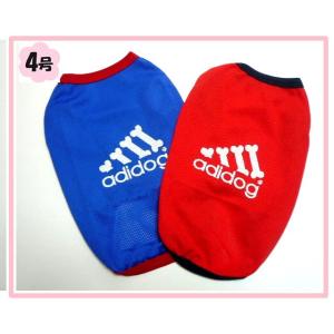 (犬服 ネコポス便)4号 メッシTシャツ adidog赤・青 (激安 ドッグウェア Tシャツ)