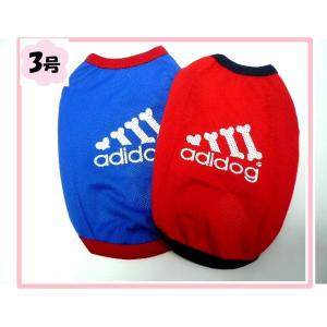 (犬服ネコポス便 )3号 メッシュTシャツadidog 赤・青 (激安 ドッグウェア Tシャツ)