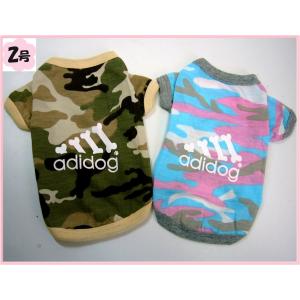 (犬服ネコポス便 )Tシャツ(袖あり) 迷彩adidog(ロゴ大) 2号(激安 ドッグウェア Tシャツ)