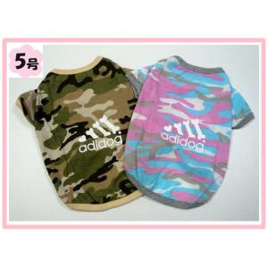(犬服 ネコポス便)Tシャツ(袖あり) 迷彩adidog(ロゴ大) 5号(激安 ドッグウェア Tシャツ)