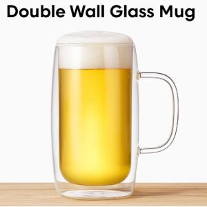 単品 ダブルウォールグラス 耐熱 マグカップ 200cc ガラス グラス 取っ手付き 二重壁 北欧風 Wウォール タンブラー