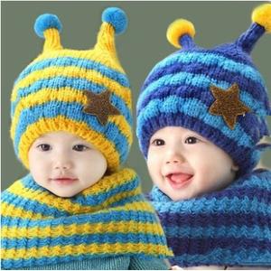 ミツバチ帽子キッズ 子供 ベビー 赤ちゃん ニット帽 マフラーセット冬暖か ポンポン スター 女の子