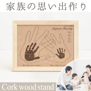 【ファミリーコルクウッドスタンド】赤ちゃん 手形アート 家族 2人目 兄弟姉妹 出産祝い 双子 ベビーギフト 体験ギフト 家族写真 アルバム ギフト券 命名書