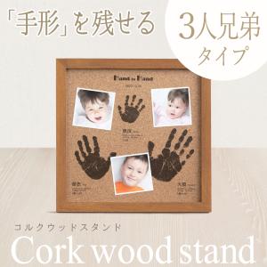 【コルクウッドフレーム3人きょうだいタイプ】赤ちゃん 2人目 3人目 出産祝い 兄弟姉妹 双子 第二子 上の子 手形 メモリアル 誕生日 プレゼント 両親 出産内祝い