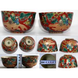 1482/中古・骨董/九谷焼 九谷木米 湯呑茶碗 2点 ※色絵 金彩 賢人唐子図 青木木米 湯飲茶碗