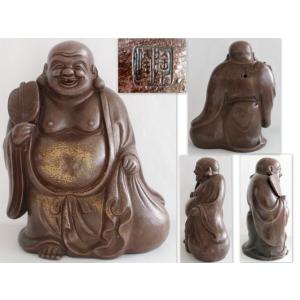 609/中古/備前焼 窯変ゴマ釉 木村陶峰 布袋尊 高さ:約33cm 横:約26cm 幅:約16.5cm ★布袋様・七福神・縁起物・置物