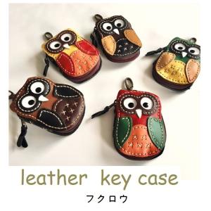 レザー キーケース フクロウ 牛革 本革 ふくろう キーホルダー キーリング ラウンドファスナー 鍵 カギ スマートキー ハンドメイド レディース メンズ