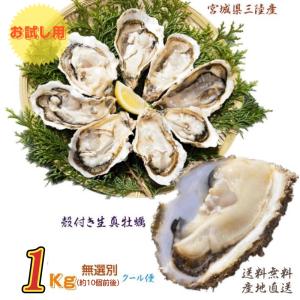 牡蠣 試食し用 宮城県三陸・牡鹿半島産 温湯処理用 無選別殻付き生牡蠣 1kg /箱 産地直送 送料無料