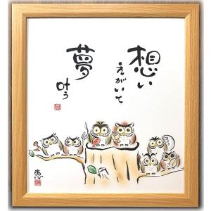 額 絵画 色紙 メッセージ 額付 セット 励まし 応援 勇気 癒し かわいい 和み プレゼント ふくろう 夢叶う CM588